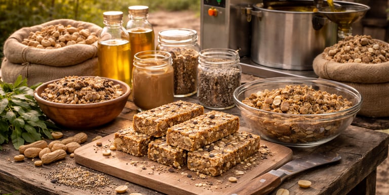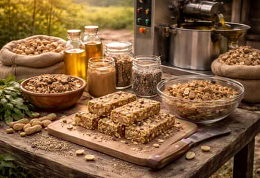 The residual oil press cake that is obtained following the extraction of peanut oil using an oil extraction machine is known to possess a fairly high protein content. This protein content can be effectively utilised by using the oil press cake to create low-cost protein bars or cookies that can either be sold in local rural markets or distributed at Anganwadis alongside meals. This offering aims to teach rural oilseed cultivators how to make such protein bars and cookies using peanut oil press cake, thus granting them an additional revenue stream and value chain that works towards the development of a rural circular economy.
